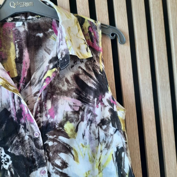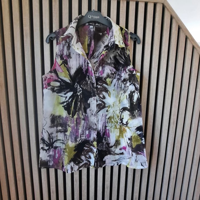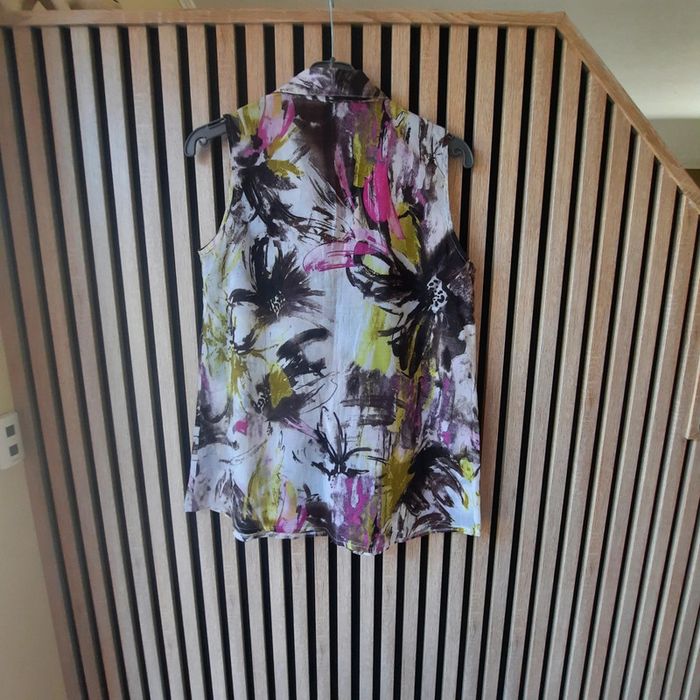 Top débardeur tunique fluide T 38 Fluide et légère,agréable à porter. Boutonné devant Aisselles à aisselles 47 cm Longueur environ 70cm Polyester et viscose N hésitez pas à visiter mon profil et laissez vous guider par mes différents # #clementine13430femmest38 #tuniquefluide38 #debardeurfluide38 #blousefluide38 #vintage #vintagedressing38