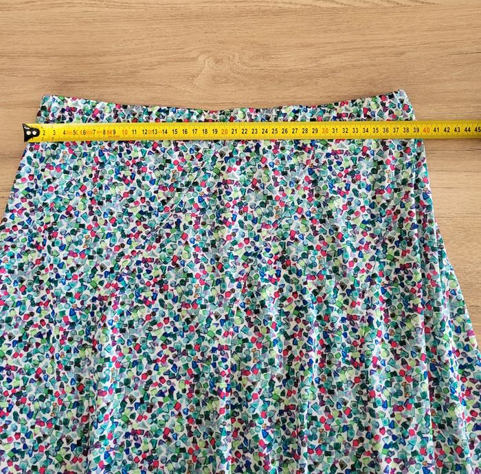 Très jolie jupe mi longue à motifs vert rose Scottage Taille 40 Taille élastique 39cm Longueur 64cm Ma fille l'a même détournée une fois en robe bandeau, très sympa et original ☺️ En excellent état ! #matka27_taille40 #taille40 #scottage #jupe #milongue #genou #vert #rose #robebandeau