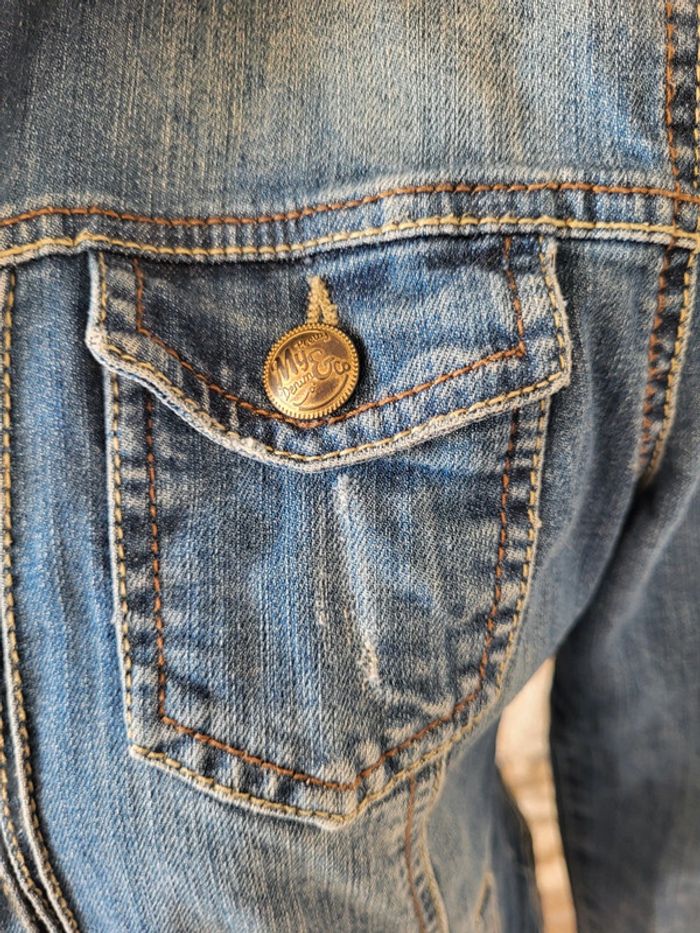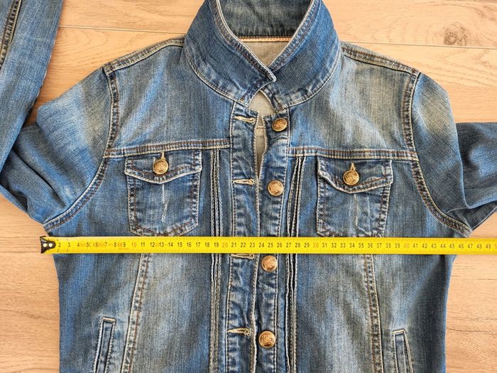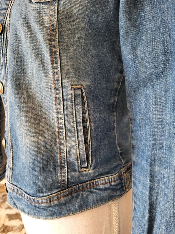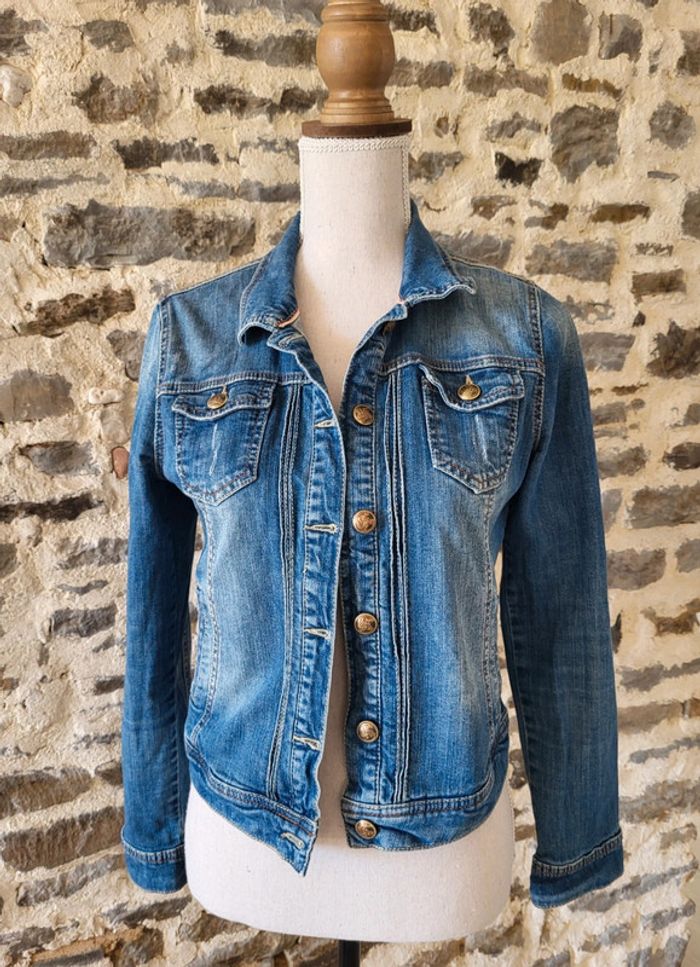 Très belle veste en jean bleu Cache Cache (étiquette manquante) Taille 36 Carure 36cm Aisselles 47cm Longueur 52cm Liseré rose et blanc à l'intérieur du col Effet usé délavé d'origine Contient de l'elastane En très bon état #matka27_taille36 #taille36 #cachecache #vesteenjean #bleu #délavée