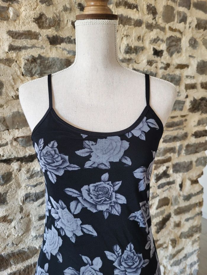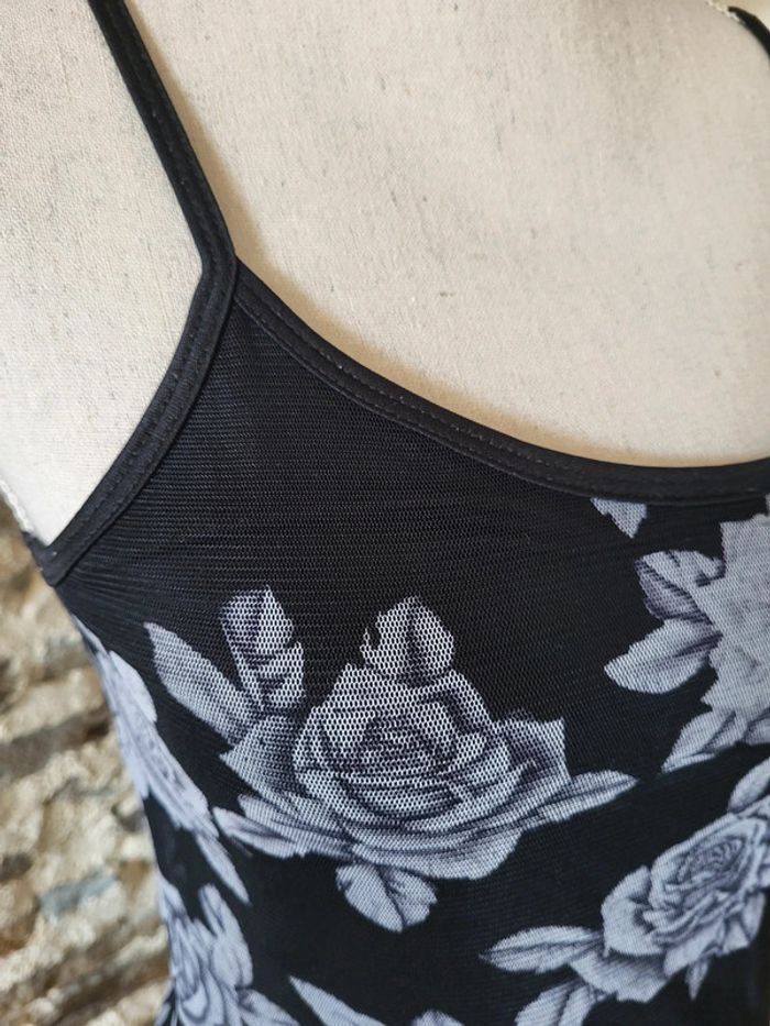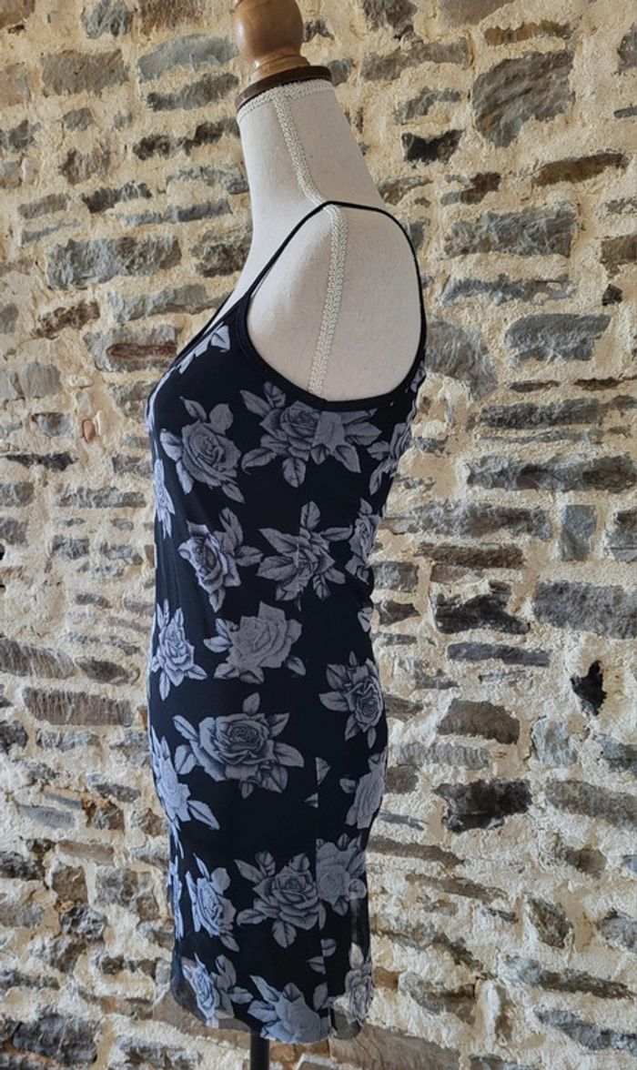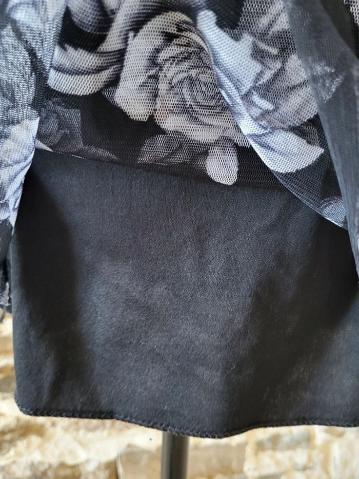 Robe courte noire et grise motifs roses Taille 34/36 - photo numéro 5