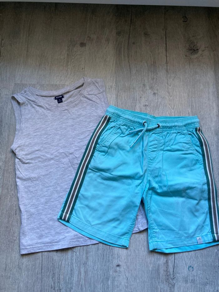 #8anspsymary15 Ensemble kiabi 8 ans 126-131 cm Bermuda kiabi 8 ans Serrage par lien 2 poches latérales 1 poche arrière avec pression Couleur vert d'eau avec liseret sur le côté ⚠️ Une tâche présente sur le devant et quelques petites tâches à l'arrière Toutefois peut être encore porté 1 débardeur gris kiabi Avec une ombre sur le col cf photo Et les coutures qui s’effilochent à l’arrière Passage en bon etat mais avec imperfections 😉 Envoi rapide et soigné Réductions actives N'hésitez pas à me contacter 😁