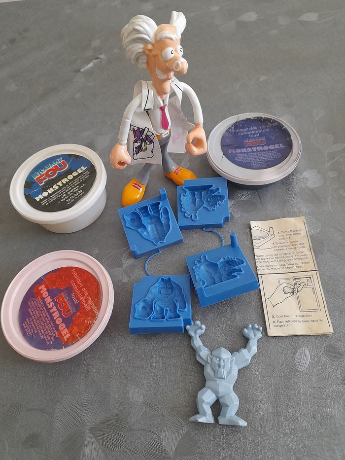 Figurine le savant fou ( scientifique) flexible Marque MATTEL Vintage 1986 Très très bon état pour son âge juste les pots de globulo je ne sais pas se que ça donne