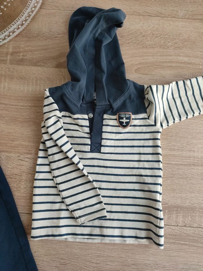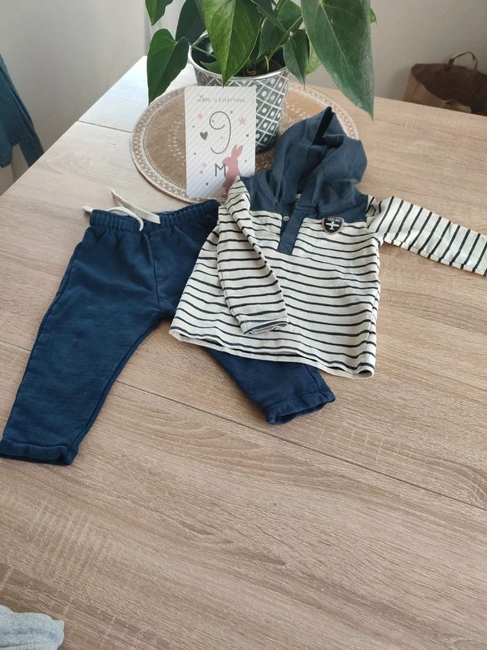 Bonjour, je vends cet ensemble pantalon et tee-shirt à capuche manches longues, en taille 9 mois, le pantalon vient de Kiabi. En très bon état. #sophieluna_enfant_9mois