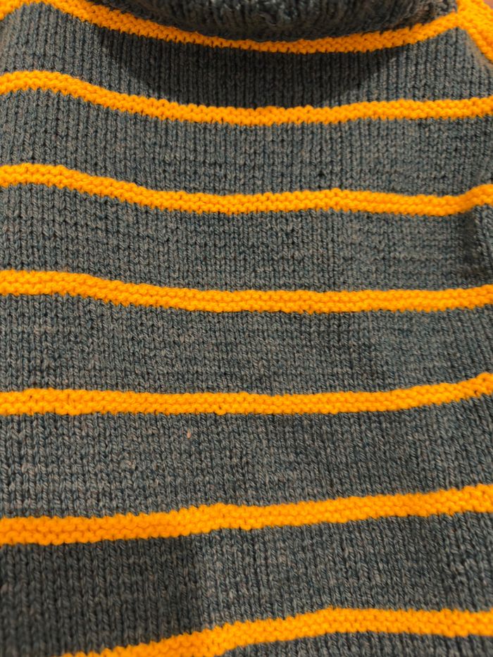 Très joli col roulé style vintage, à rayure. Il est à maille et tient très chaud! Plus d’étiquette, mais convient à une taille S.