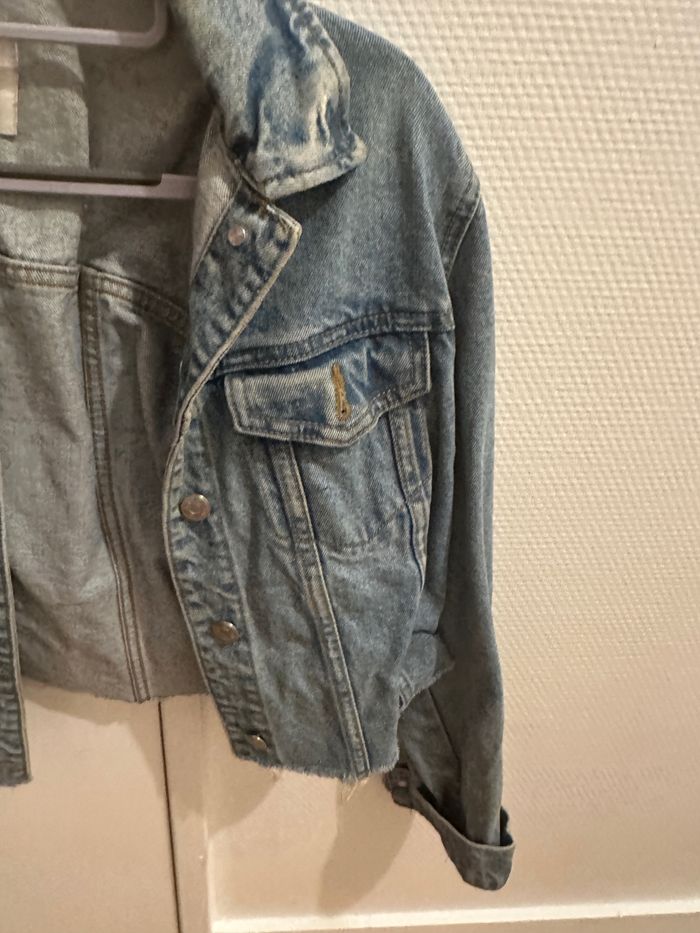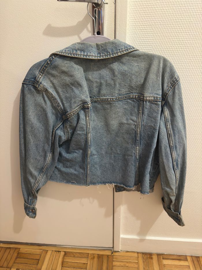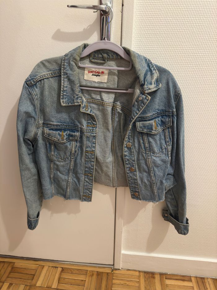 Très jolie veste en jean courte, toujours en très bon état de la marque Jennyfer. L’étiquette n’est plus visible mais il s’agit d’une taille M.