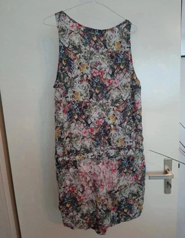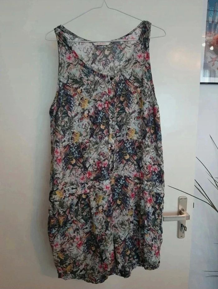 Jolie combishort en matière douce et légère. Deux poches. Motif floral. Elastique dans le dos. Etiquette coupée mais c'est du 40. Très bon état. Elle est super mignonne. Marque Camaieu. Je la vends au prix de 12 euros. #TailleL40marine