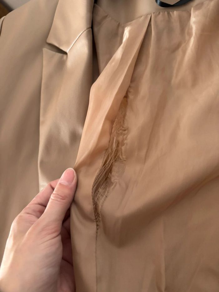 Très bon état Extérieur aucuns accrocs mais la doublure intérieure s’est déchirée voir photo #blazernude #blazermissguided #blazersimilicuir #blazerfemme #blazerdroit
