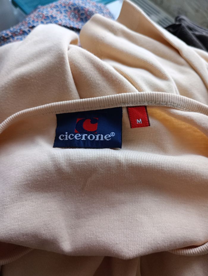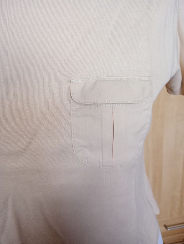 T-Shirt beige avec petite poche à l'avant. Taille : M. Marque : Cicerone. Longueur : 54 cm Largeur entre aisselles : 46 cm Très bon état.