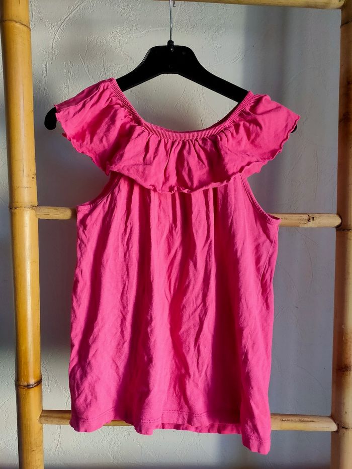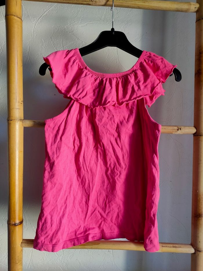 Débardeur coloris fuchsia, Col frou-frou, marque OVS, taille 8/9 ans 134 cm. Il est en bon état. Prix ferme, PAS DE NÉGO !!!