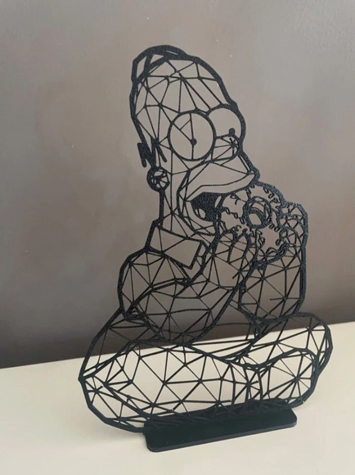 Vends Décoration géométrique Omer Simpson avec son support fait en impression 3D Format : 13 cm x 17 cm 🖼️ D’autres articles en impression 3D (décoration, logos…) sont également disponible dans mon dressing. N’hésitez pas à vous abonner à mon profil afin d’être averti de toutes les nouveautés ☺️ 📦 Tous les envoies sont très protégés pour éviter tout désagrément lors du transport ⚙️ Possibilités d’impression sur mesure : n’hésitez pas à me faire une demande de logos ou tableau, je pourrai vous proposer des créations sur mesure #impression3D