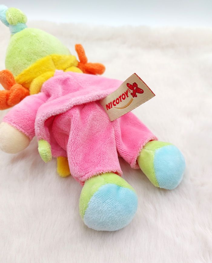 Peluche Doudou Poupée Lutin Fille Rose Jaune Orange vert NICOTOY avion petit modèle 21 Cm Très bon état Envoi rapide Réf A12313 #minotresor #peluche #doudou #plush