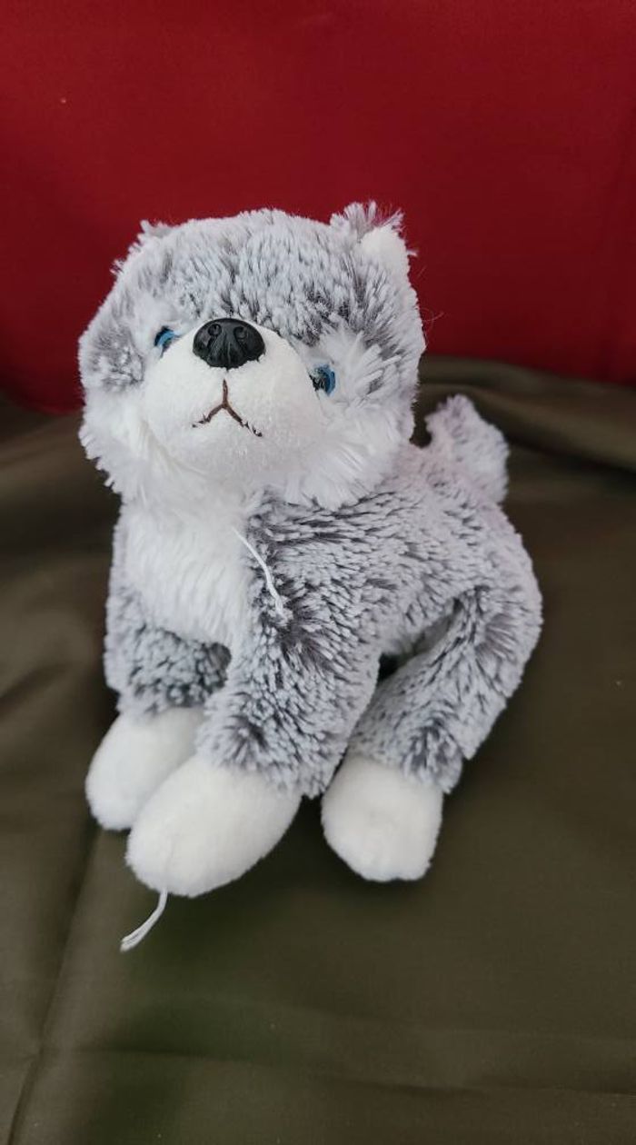 Peluche doudou husky loup gris chiné blanc DANI yeux bleus - photo numéro 1