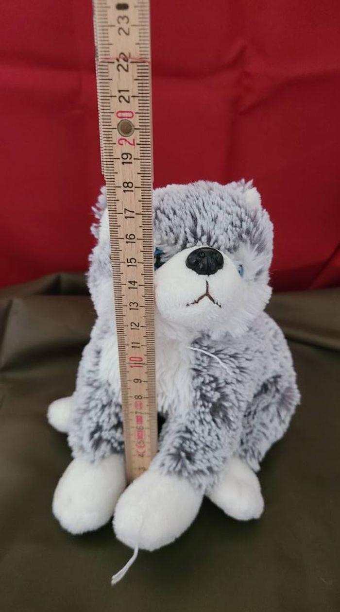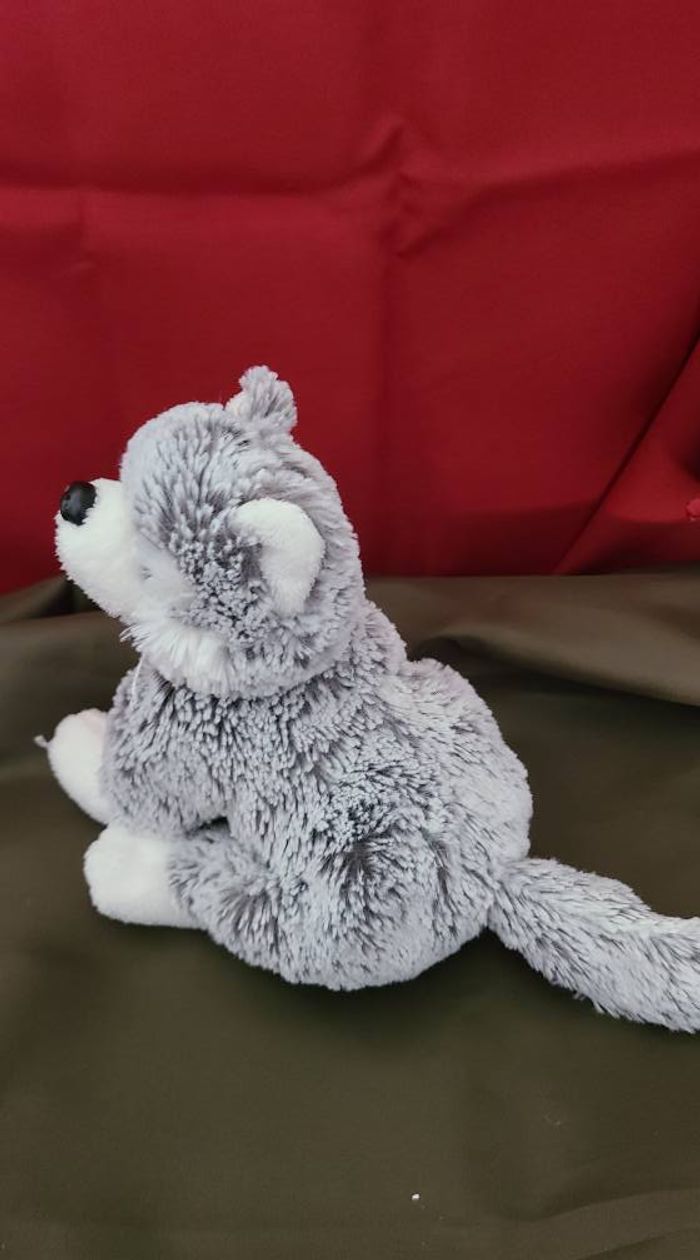 Peluche doudou husky loup gris chiné blanc DANI yeux bleus - photo numéro 6