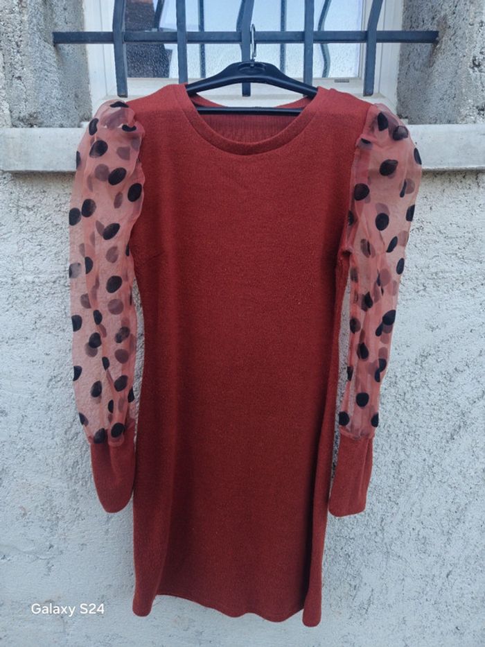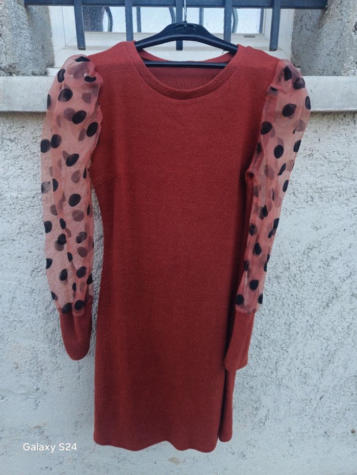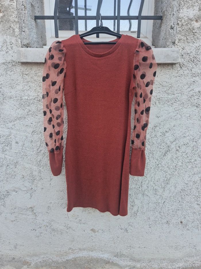 ⬇️mes autres annonces pour femme en taille 38 👉 #cg89femme38 😁 réductions activées des 2 articles ! une robe marron avec des manches longues transparentes avec imprimé à pois. Elle mesure 35 cm aux épaules, 42 cm aux aisselles et 88 cm de longueur. bon état - taille 38 #robe #taille38 #femme #mancheslongues #soirée #sortie #fete