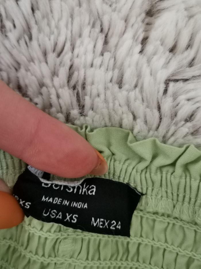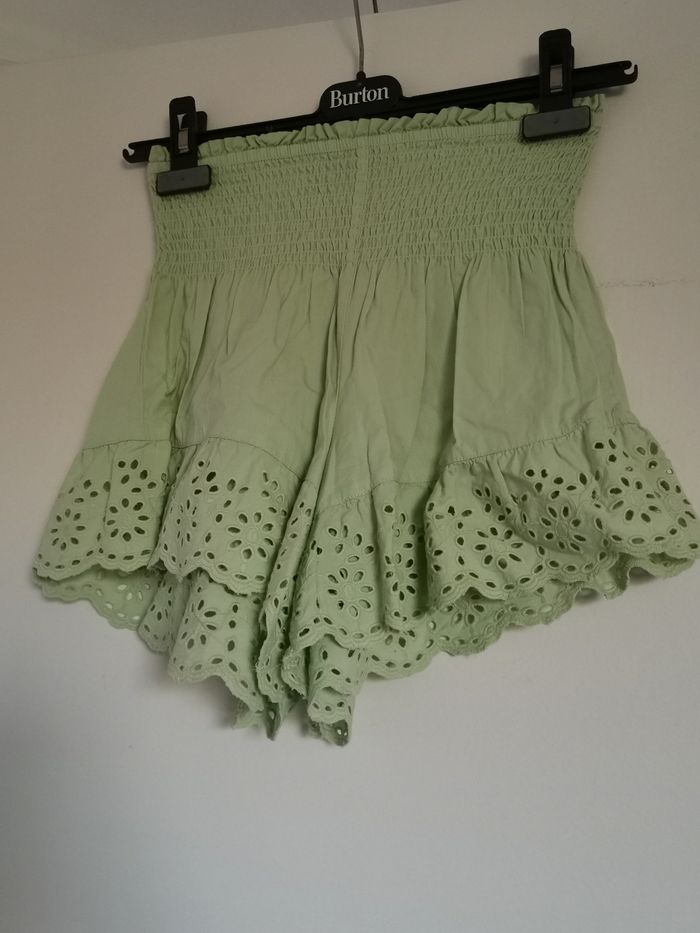 Cadeau offert dans chaque commande. Mini short Bershka Couleur vert Avec jolis motifs sur le bas Taille XS Élastique à la taille Envoyé avec soins