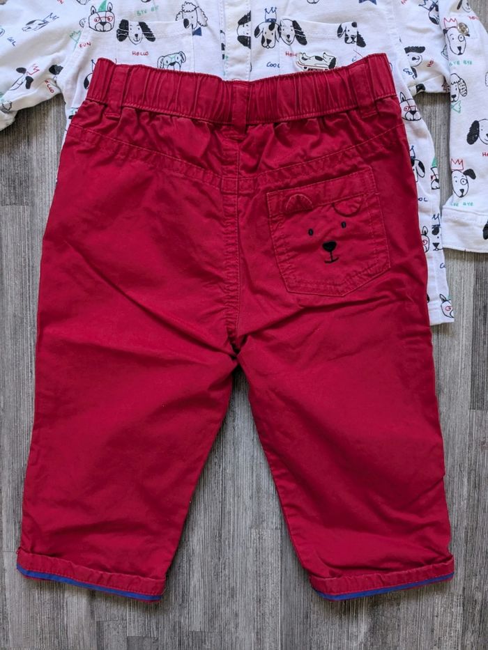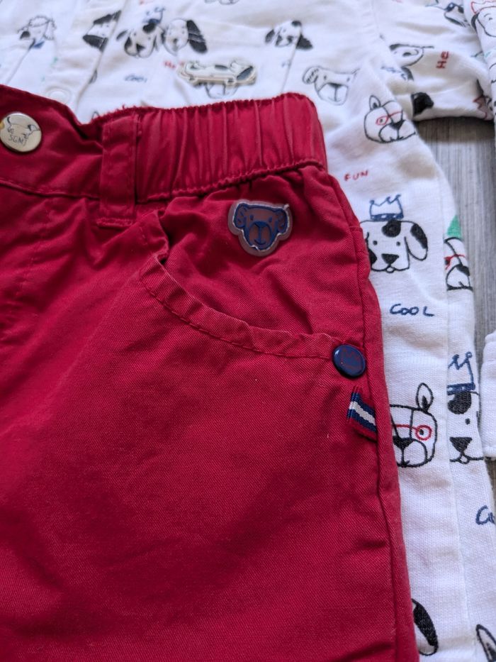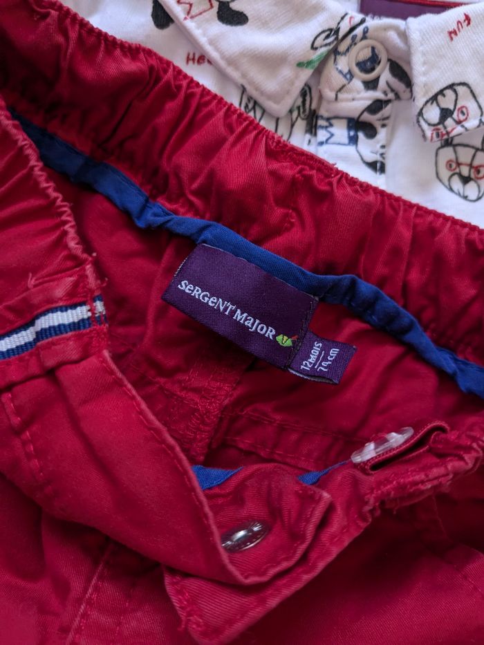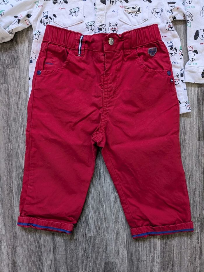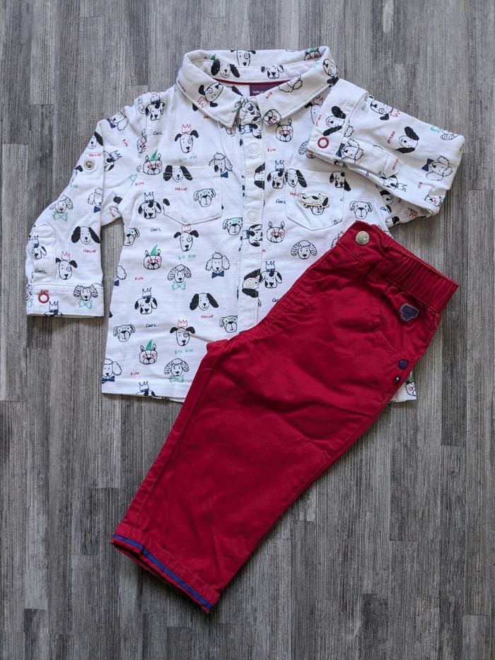 Jolie tenue idéale pour la demi-saison et été. Les manches de la chemise se retroussent pour s'adapter à la chaleur de la journée et le pantalon est très léger pour couvrir les 2 saisons. Les 2 vêtements sont en très bons états et sont de taille 12 mois. Marque Sergent Major.