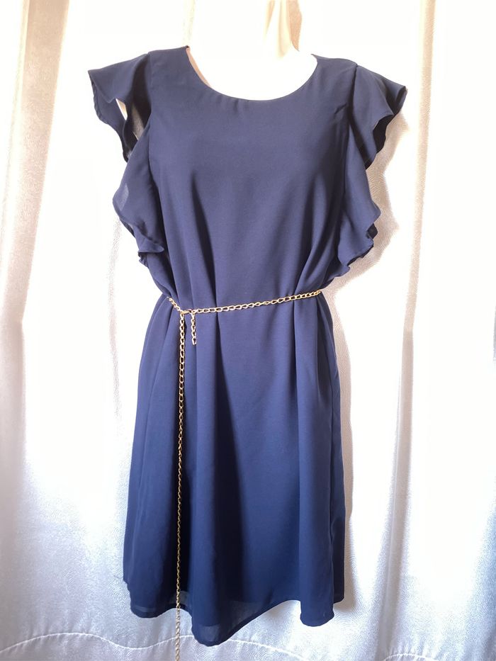 Jolie petite robe bleu marine volant aux emmanchures 36 Only Entièrement doublée La ceinture ne fait pas partie de la vente