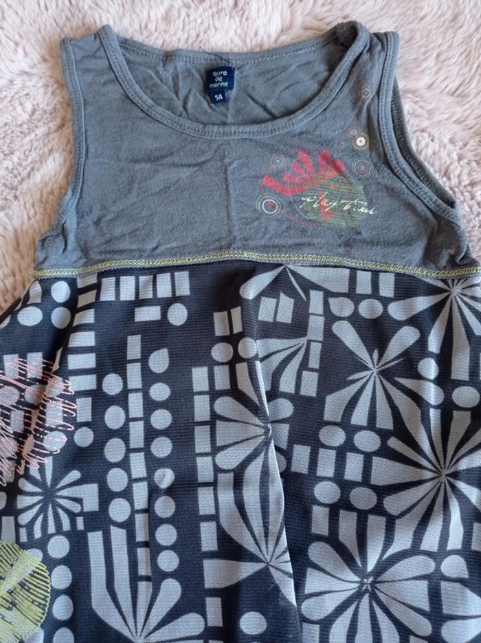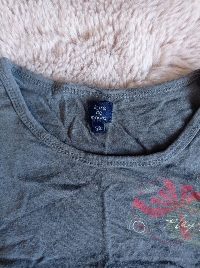Tunique de la marque Terre de marins en taille 5 ans. Base en jersey gris et volant à motif. Porté mais en bon état. Pour voir toutes mes annonces en 5 ans afin de constituer un lot et bénéficier de réductions : #nanoukou_fille_5ans Retrouvez tous mes autres liens dans mon profil avec toutes mes tailles disponibles, jouets, chaussures... Merci de me contacter avant tout achat via UPS et Vinted Go.