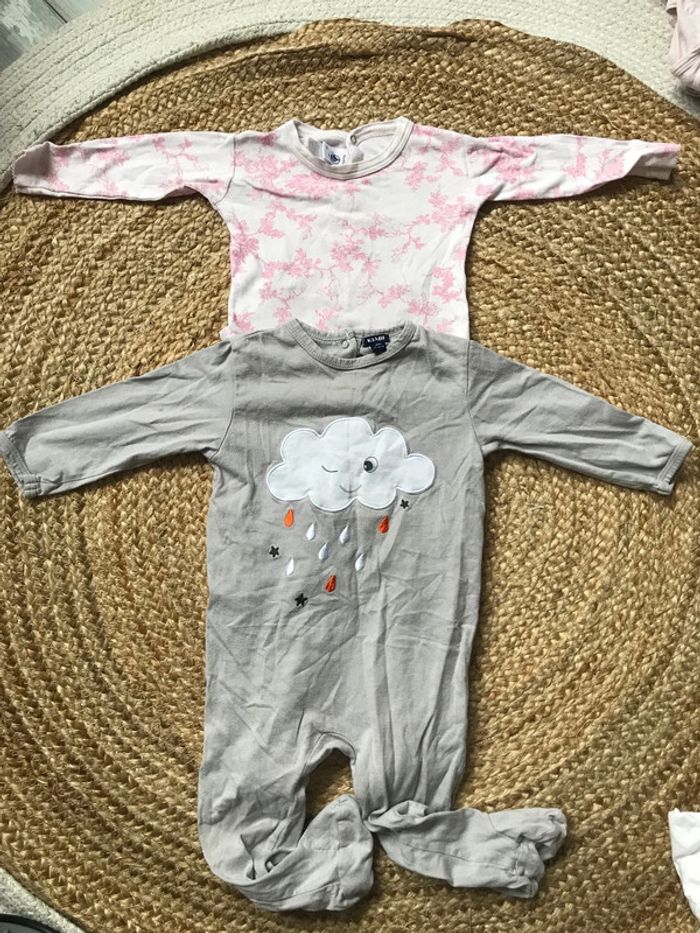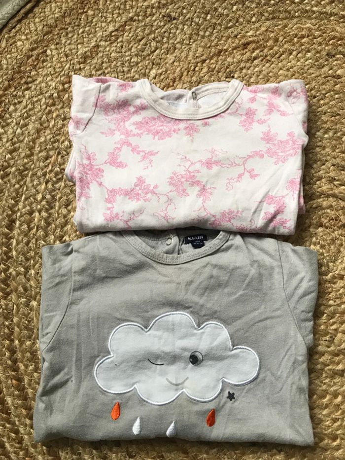2 pyjamas d été Le rose reste taché sous les pieds et le gris bouloches et tache