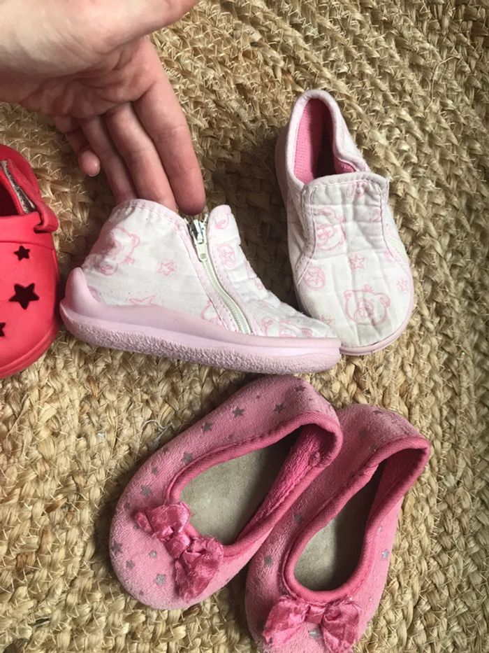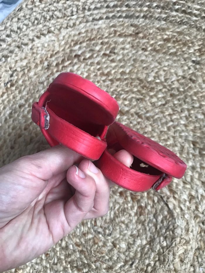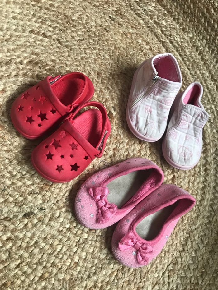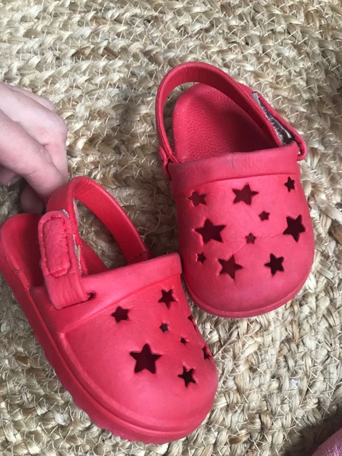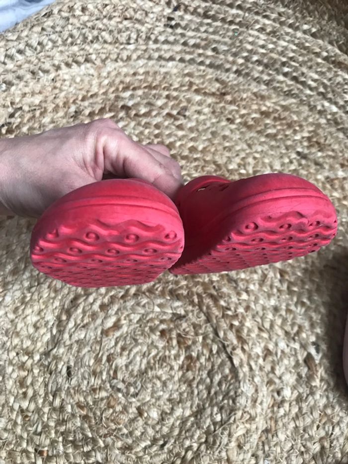 Crocs rouge bon état et donne 2 paires de chaussons pointure 20