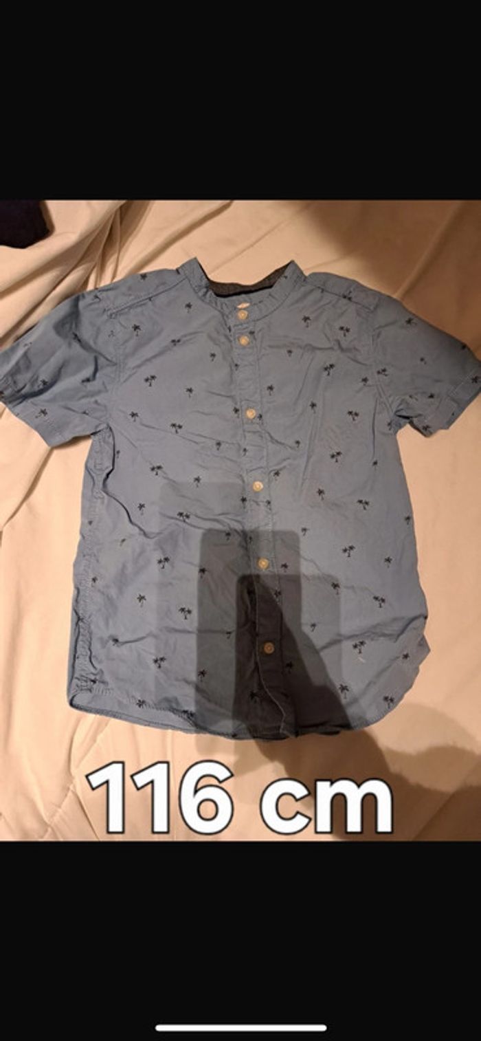 Chemise bleu ciel avec des palmier En très bon état Taille 116 6 ans Marque H&m Envoi soigné et rapide 24/48h