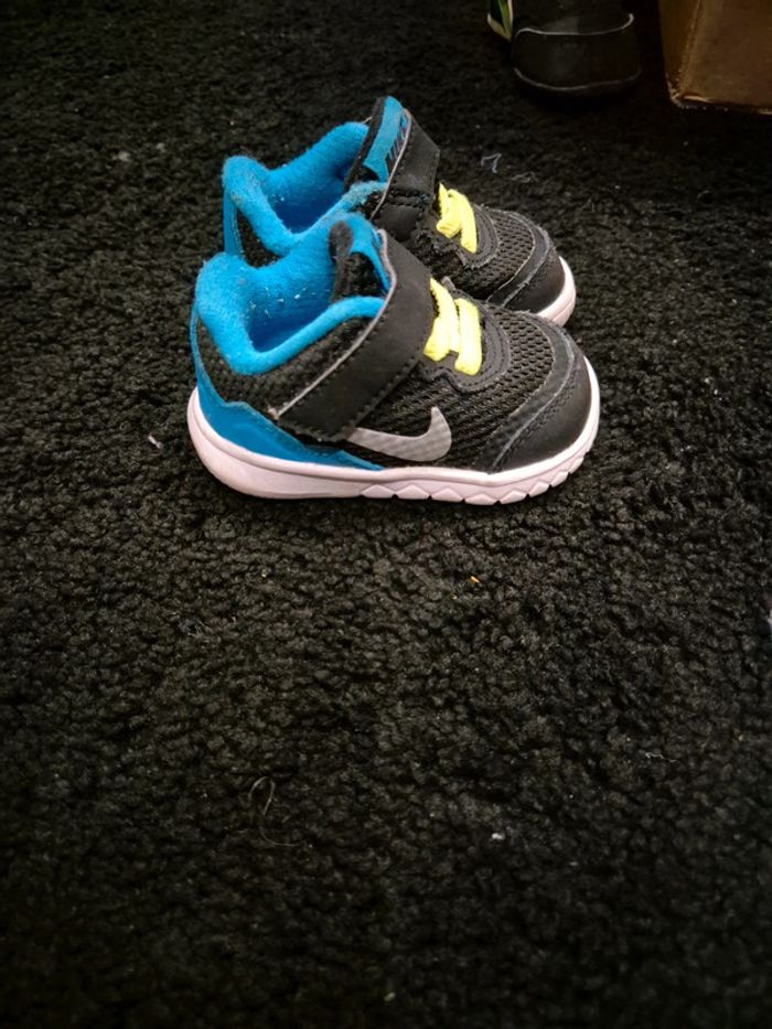 Vend basket nike t 17 bon état couleurs noir jaune fluo les lacet et bleu derrière