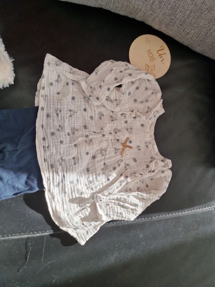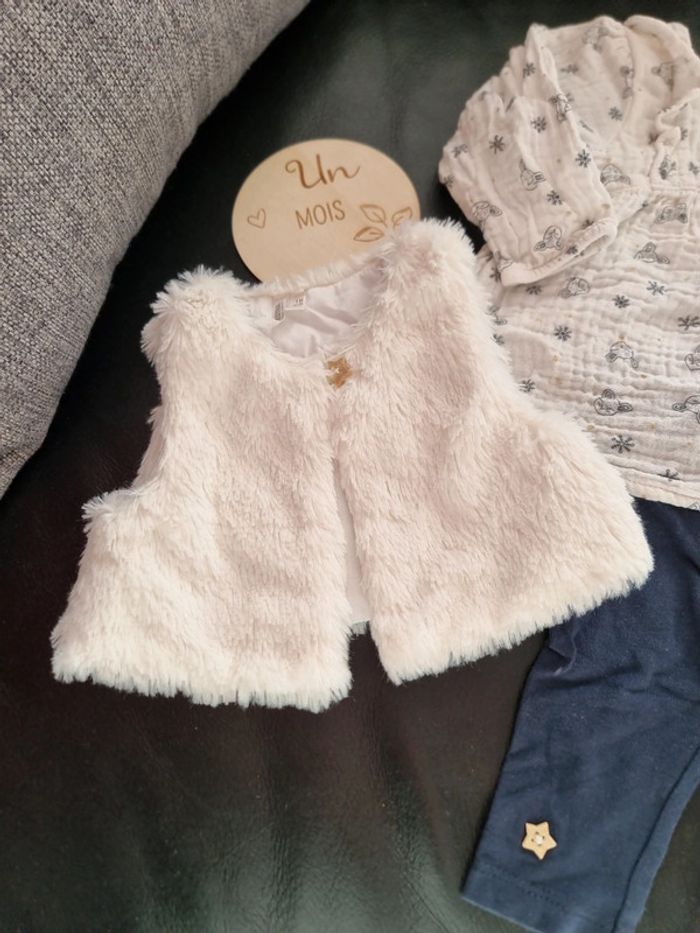 Petit ensemble 3 pièce 1 mois avec le legging la petite blouse et la petite fourrure