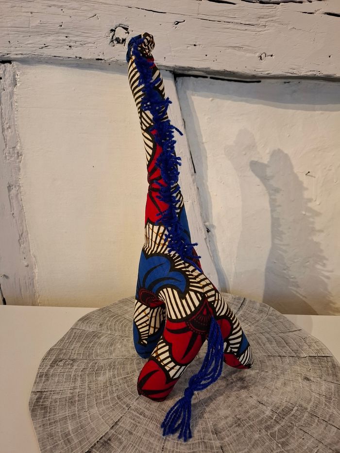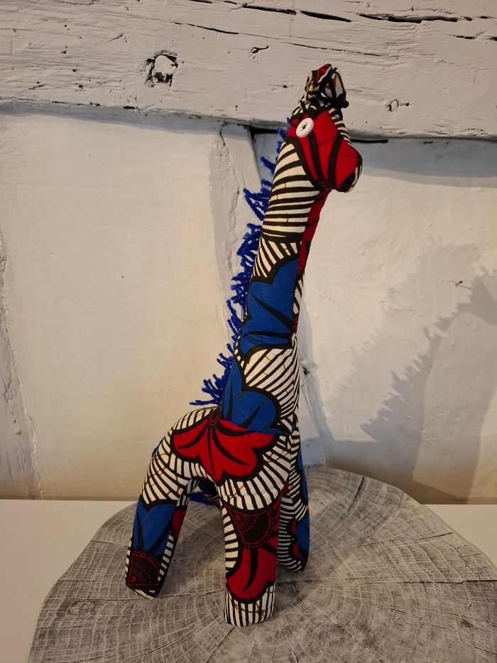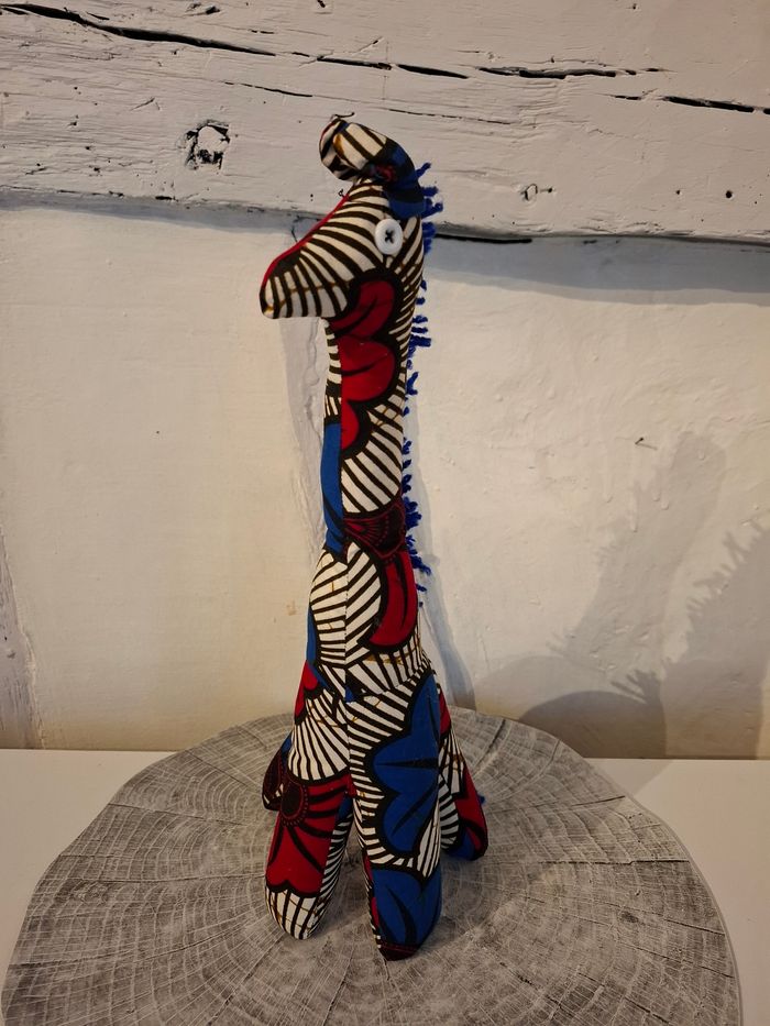 Peluche multicolore de girafe. Art africain Dimension : 38 cm de hauteur