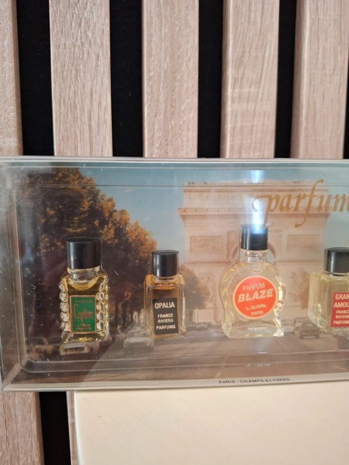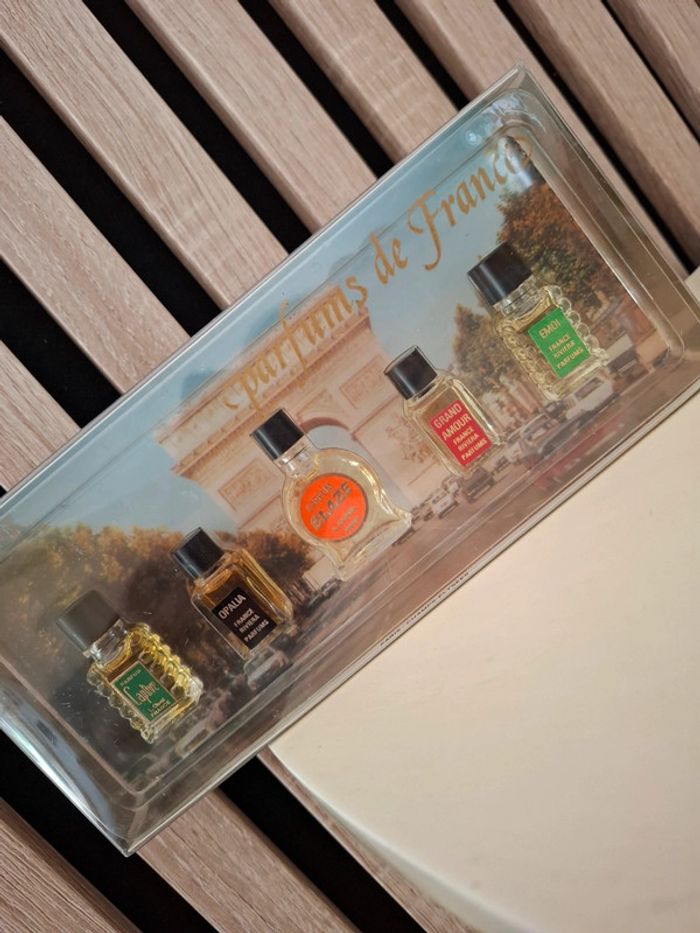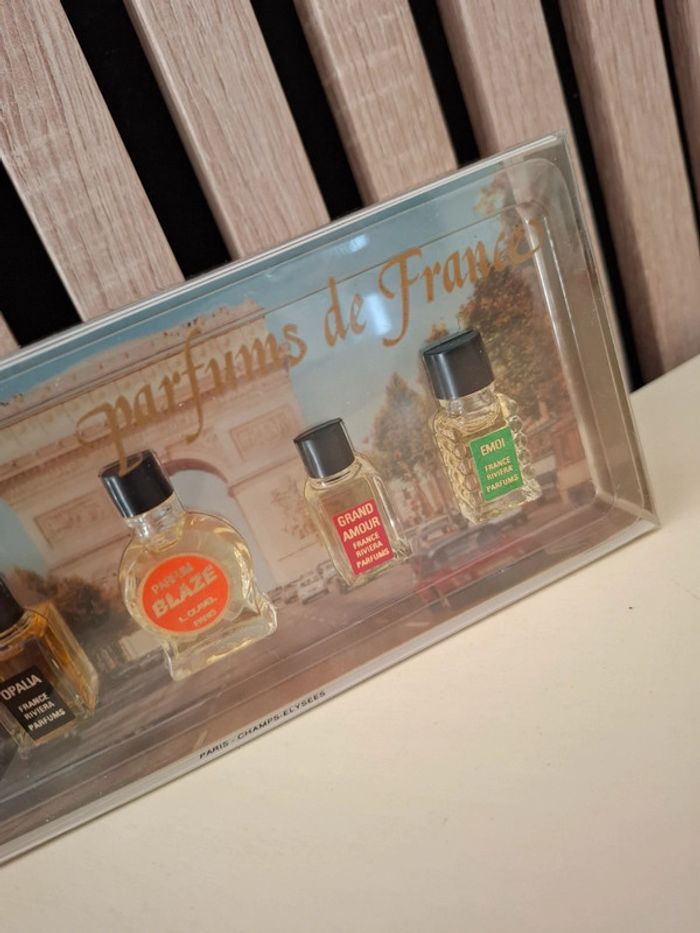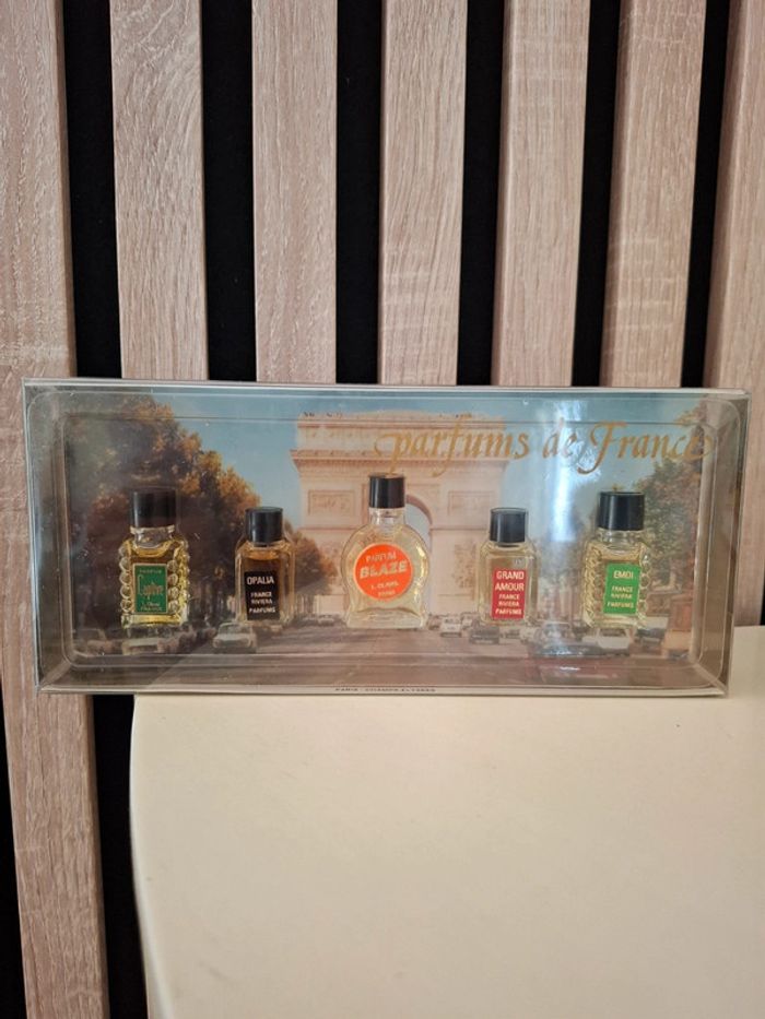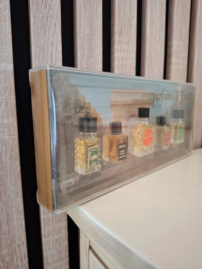 Une jolie boîte de 5 petits flacons de parfums pour collection, collectionneurs de miniatures ou a utiliser.....