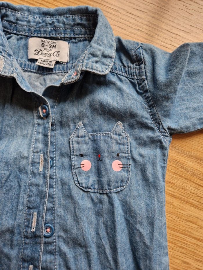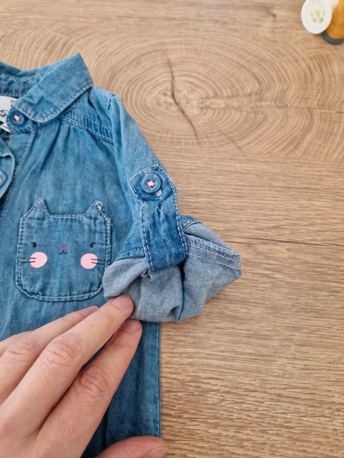 Chemise en jean souple Poche tête de chat Possibilité de retrousser les manches 3 mois - 62 cm