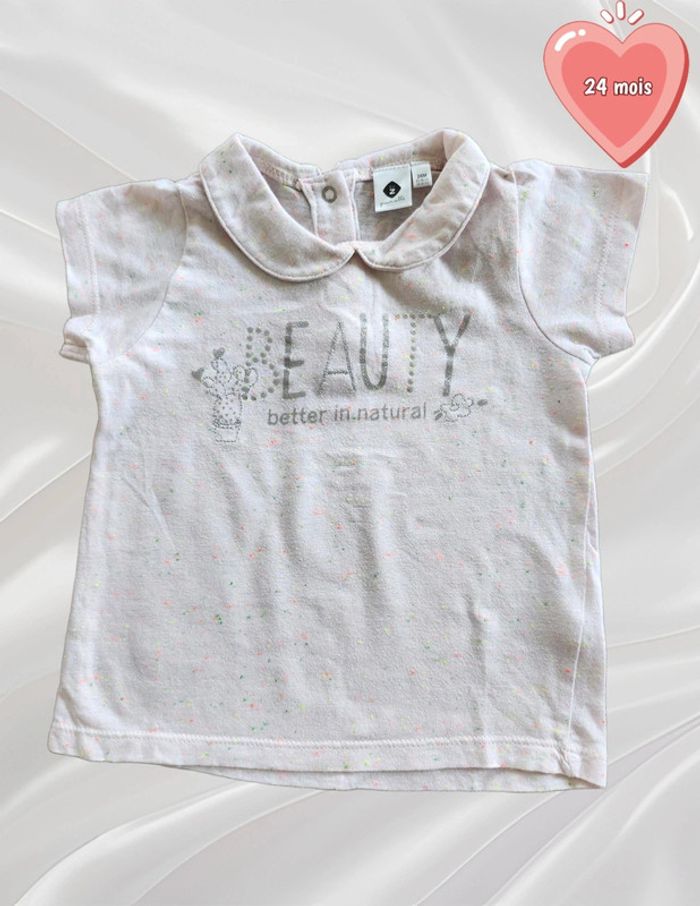 Vends T-shirt avec col, taille 24 mois, de la marque Z, de couleur rose clair, en coton et polyester. Remise en main propre possible ⚠️ Pas d'envoi par Vinted Go car aucun point dans ma région. #Nebchan_fille24mois