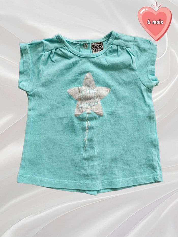 Vends T-shirt, taille 6 mois, de la marque Tape à l'oeil, de couleur vert avec motif étoile 🌟 couleur argent. Remise en main propre possible ⚠️ Pas d'envoi par Vinted Go car aucun point dans ma région. Possibilité de faire des lots ☺️ Dressing trié par taille ⬇️ (et voir profil 💕) #Nebchan_fille6mois