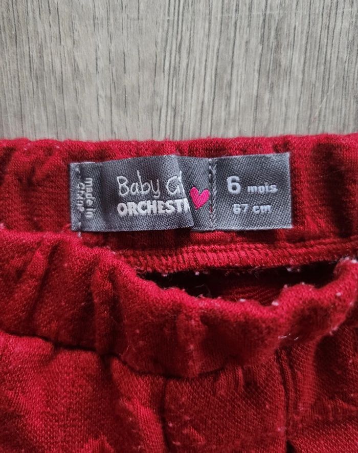 Vends pantalon, taille 6 mois, de la marque Orchestra, de couleur rouge bordeaux, en coton et élasthanne. Remise en main propre possible ⚠️ Pas d'envoi par Vinted Go car aucun point dans ma région. Possibilité de faire des lots ☺️ Dressing trié par taille ⬇️ (et voir profil 💕) #Nebchan_fille6mois