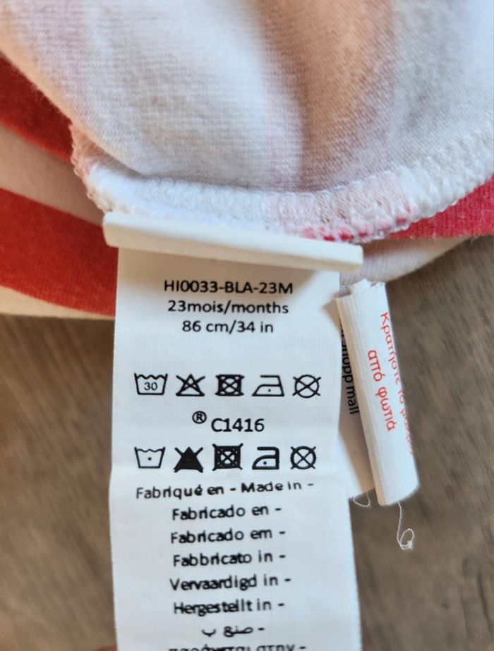 Vends T-shirt / haut manches longues, taille 23 mois, de marque inconnue, de couleur rayée rouge et blanc, en coton et élasthanne. Remise en main propre possible ⚠️ Pas d'envoi par Vinted Go car aucun point dans ma région. Possibilité de faire des lots ☺️ Dressing trié par taille ⬇️ (et voir profil 💕) #Nebchan_fille24mois