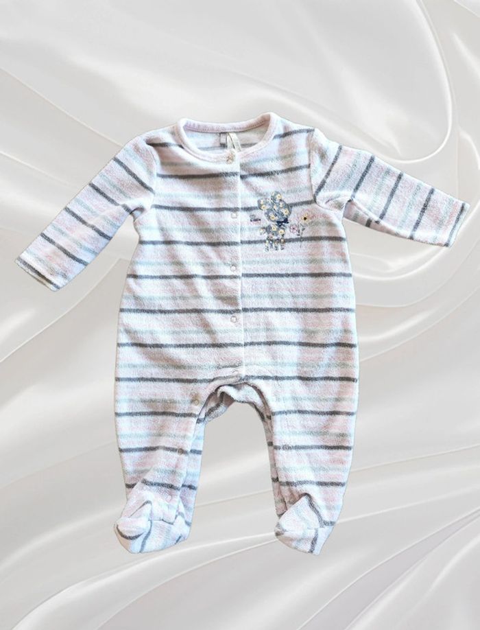 Lot de 3 pyjamas / grenouillères velours fille 1 mois