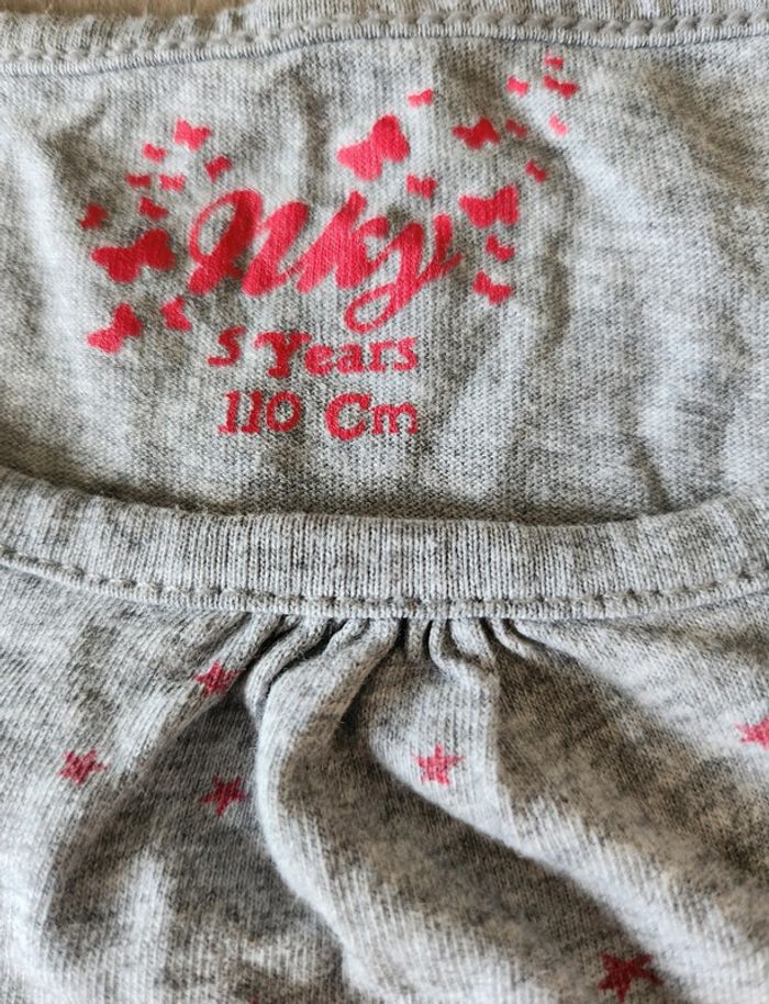 Vends T-shirt / haut manches longues, taille 5 ans, de la marque NKY, de couleur gris avec de petites étoiles roses fuchsia 🌟. Remise en main propre possible ⚠️ Pas d'envoi par Vinted Go car aucun point dans ma région. #Nebchan_fille5ans