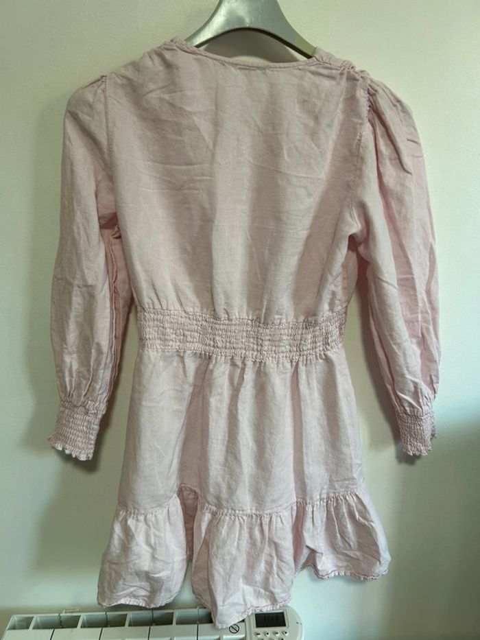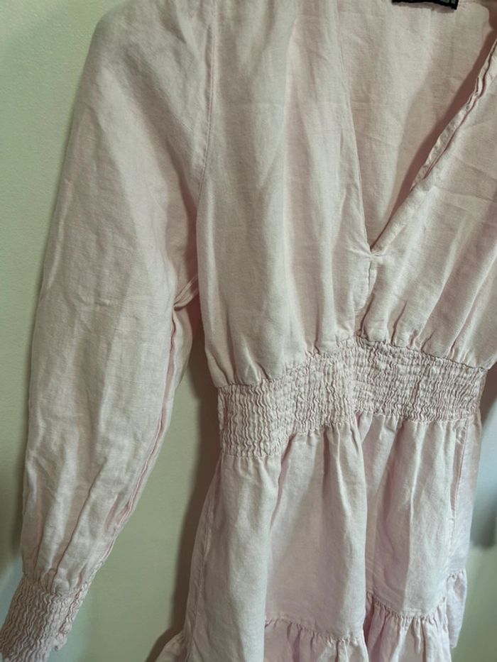 Jolie robe en lin col V à volants • Rose poudré • Zara • taille S - photo numéro 7