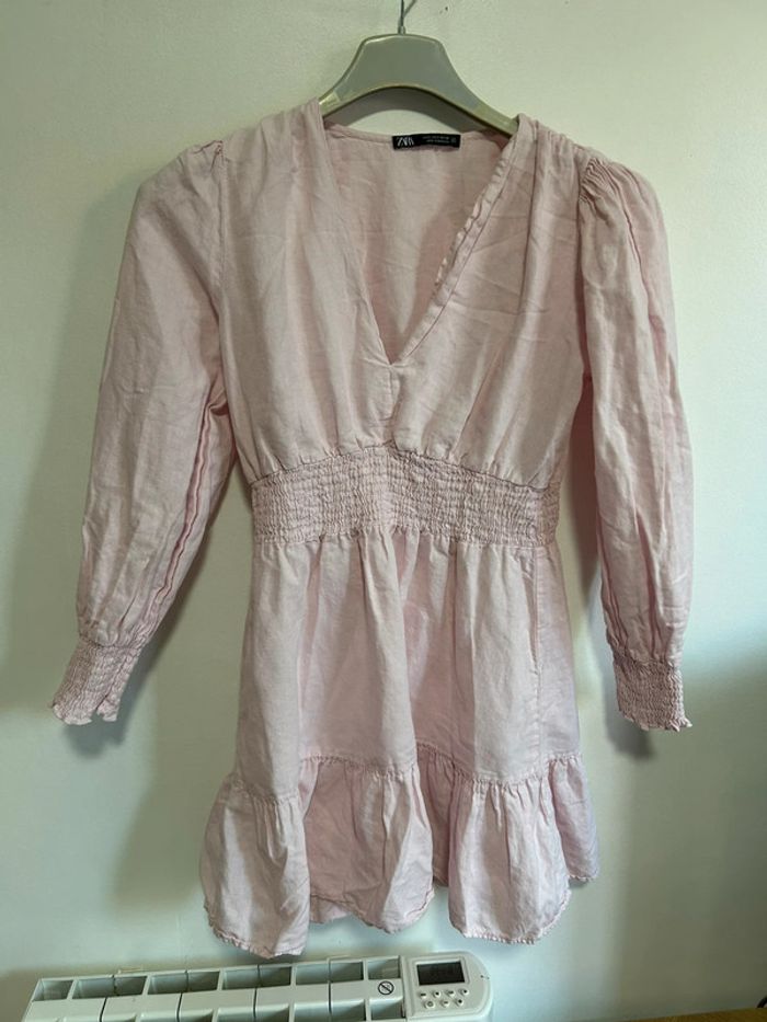 Jolie robe en lin col V à volants • Rose poudré • Zara • taille S - photo numéro 1