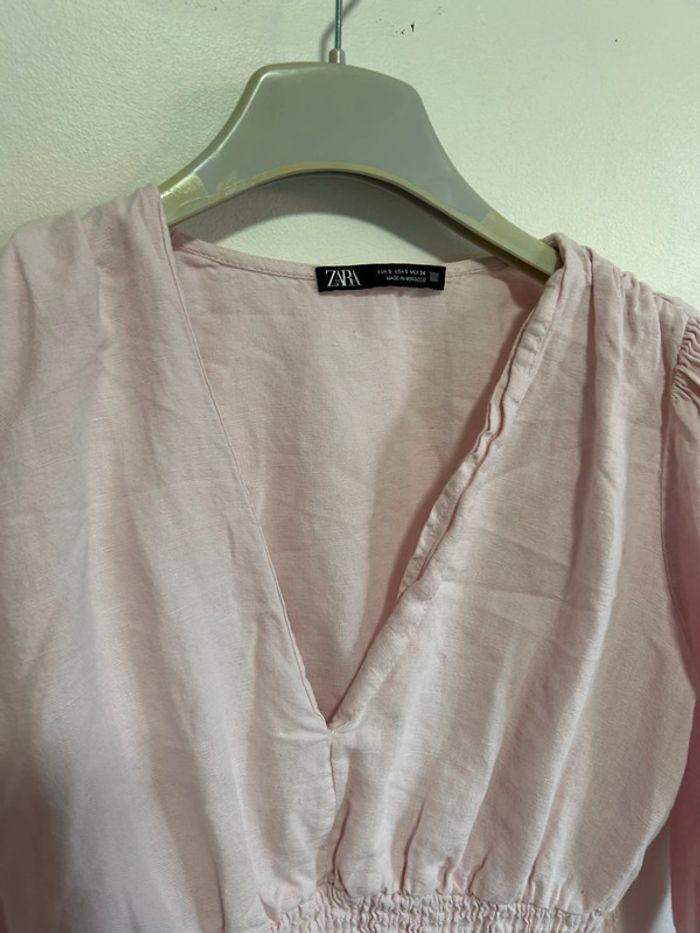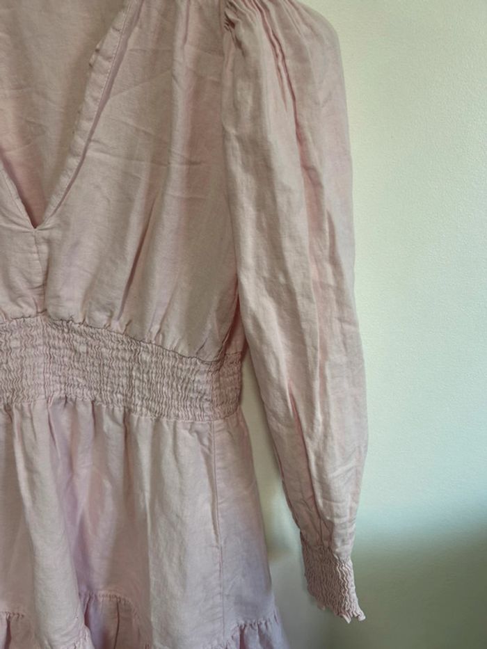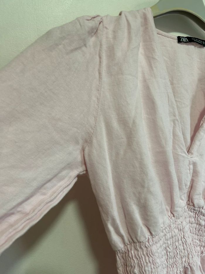 Jolie robe en lin col V à volants • Rose poudré • Zara • taille S - photo numéro 3