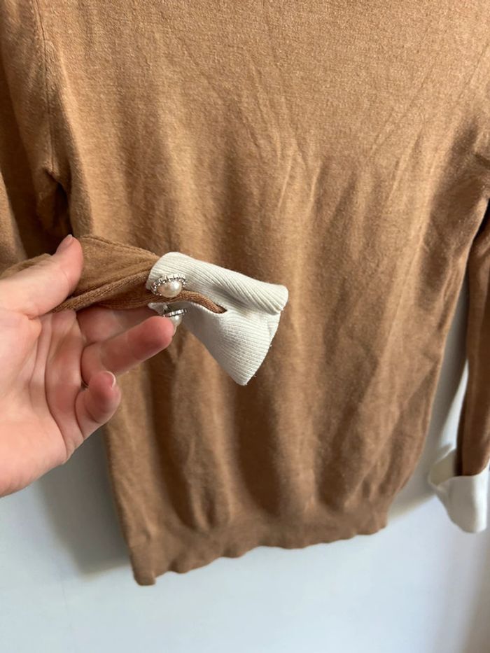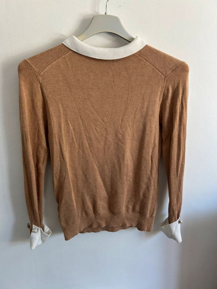Joli pull beige/marron à col et manches blanc • Zara • taille M - photo numéro 9