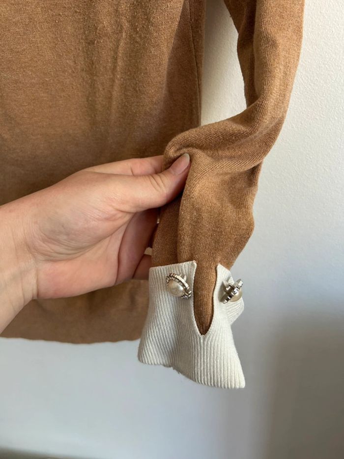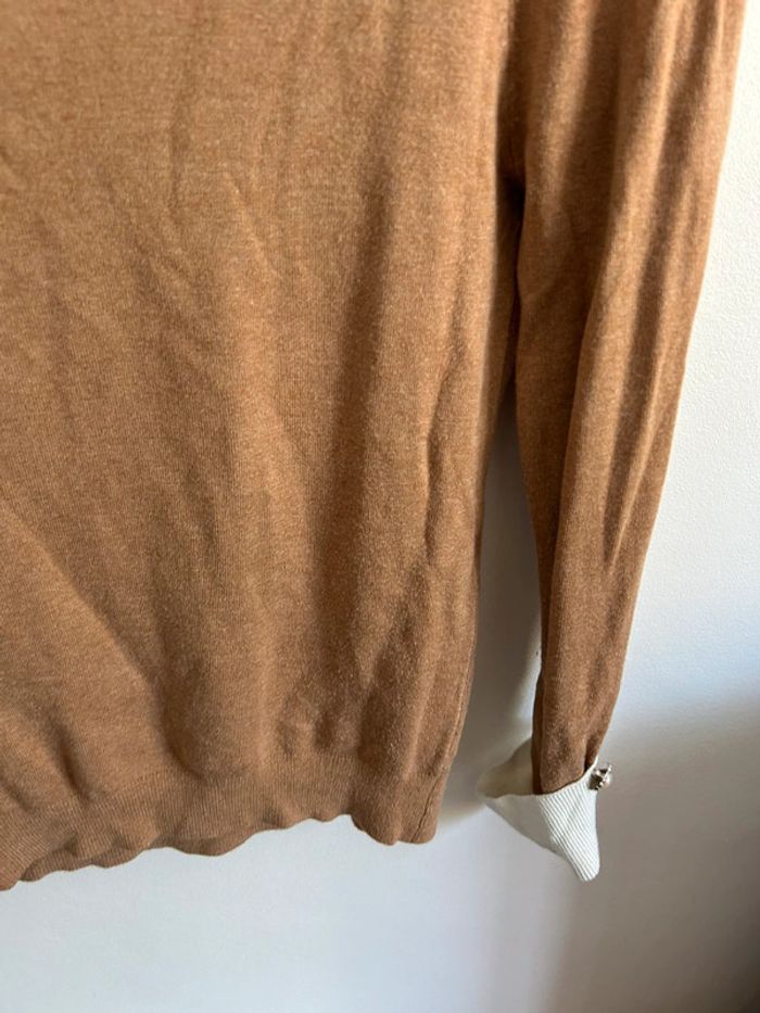 Joli pull beige/marron à col et manches blanc • Zara • taille M - photo numéro 12