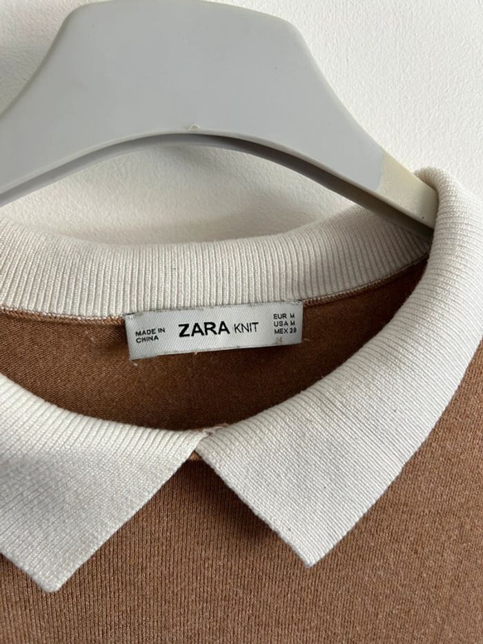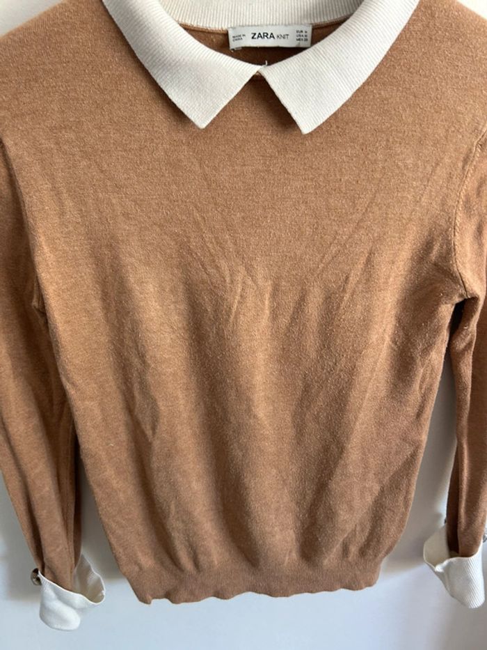 Joli pull beige/marron à col et manches blanc • Zara • taille M - photo numéro 1