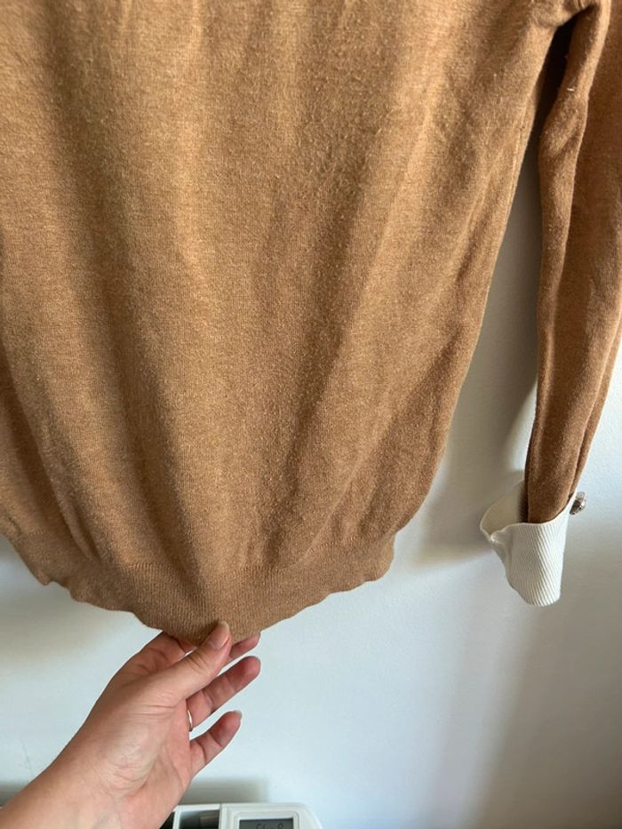 Joli pull beige/marron à col et manches blanc • Zara • taille M - photo numéro 7