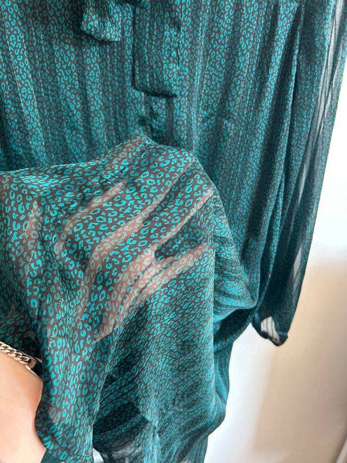 Mignonne robe large à motifs • Grain de Malice • taille 36 Neuve Polyester et fibres métallisées Noeud dans le dos Manches transparentes Idéal avec une ceinture à la taille #robe #robefleurie #robefemme #robeété #robelaine #robelarge #robegraindemalice #graindemalice #graindemalice36 #robegraindemalice36 #robepolyester #robefibresmetallisée #robelarge #robemotif #robemotifsleopard