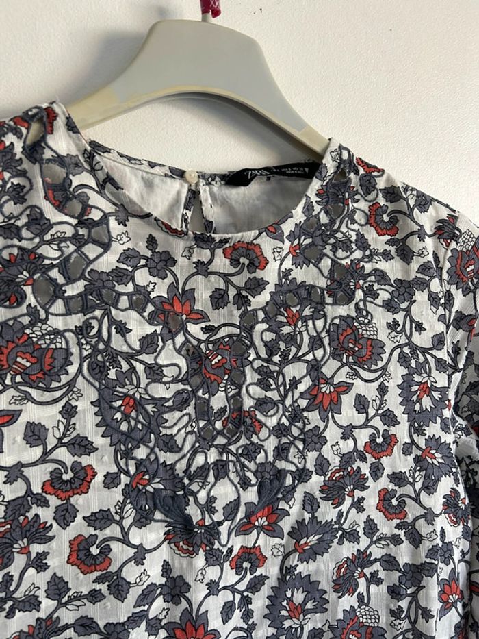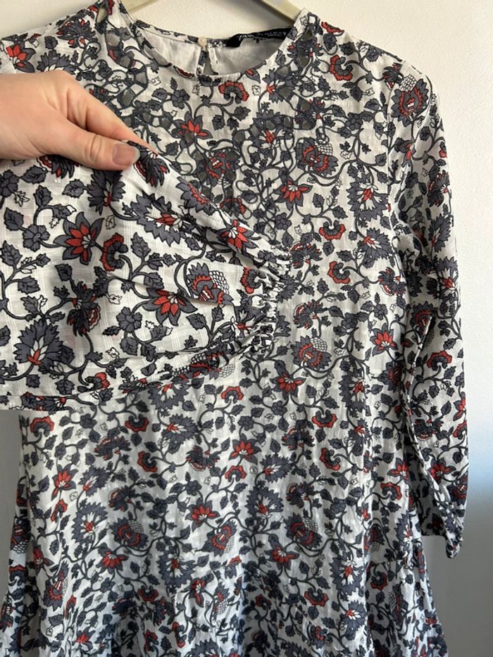 Mignonne robe fleurie courte • manches bouffantes • Zara • taille S • 100% coton - photo numéro 3
