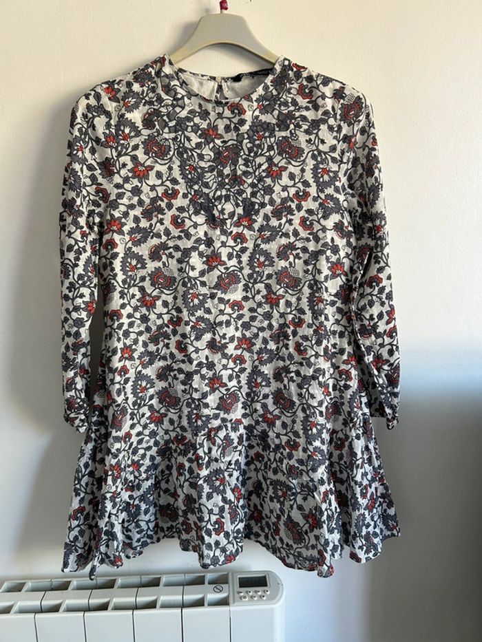 Mignonne robe fleurie courte • manches bouffantes • Zara • taille S • 100% coton - photo numéro 2