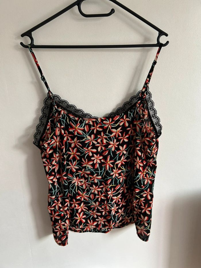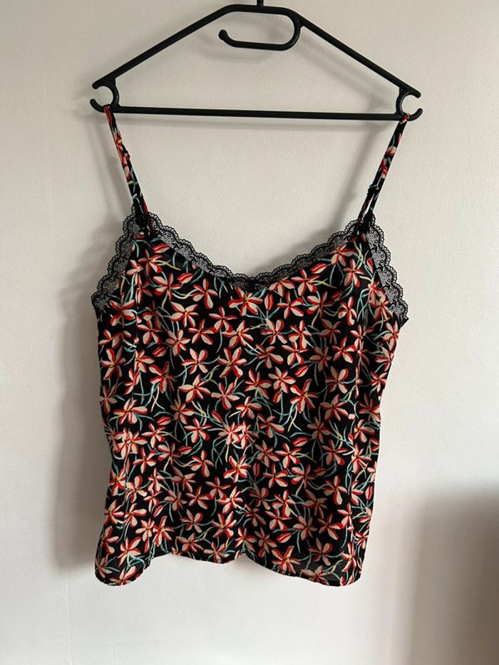 Joli débardeur motifs fleuris • fines bretelles et dentelle • taille L/40 • Camaïeu
