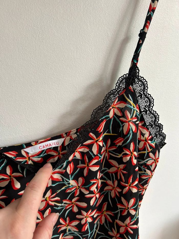 Joli débardeur motifs fleuris • fines bretelles et dentelle • taille L/40 • Camaïeu - photo numéro 4
