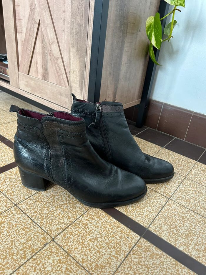 Adorable paire de bottines en cuir noir • tamaris • taille 39 - photo numéro 5