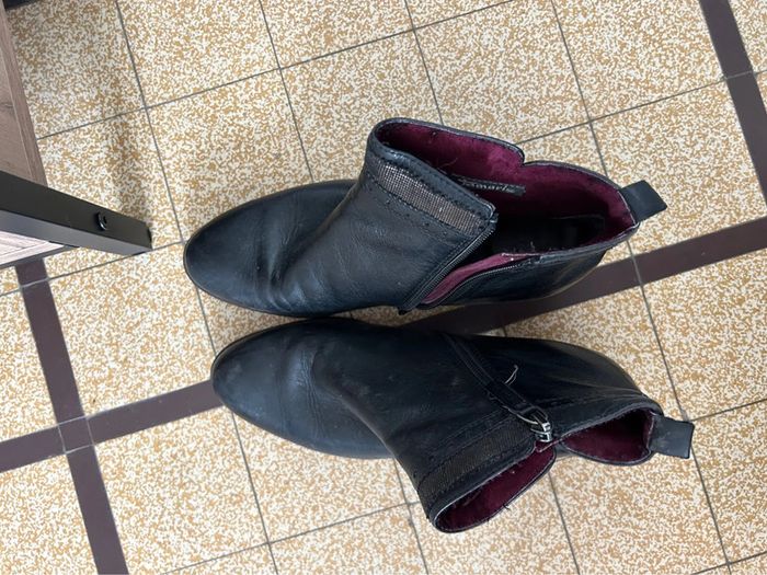 Adorable paire de bottines en cuir noir • tamaris • taille 39 - photo numéro 4